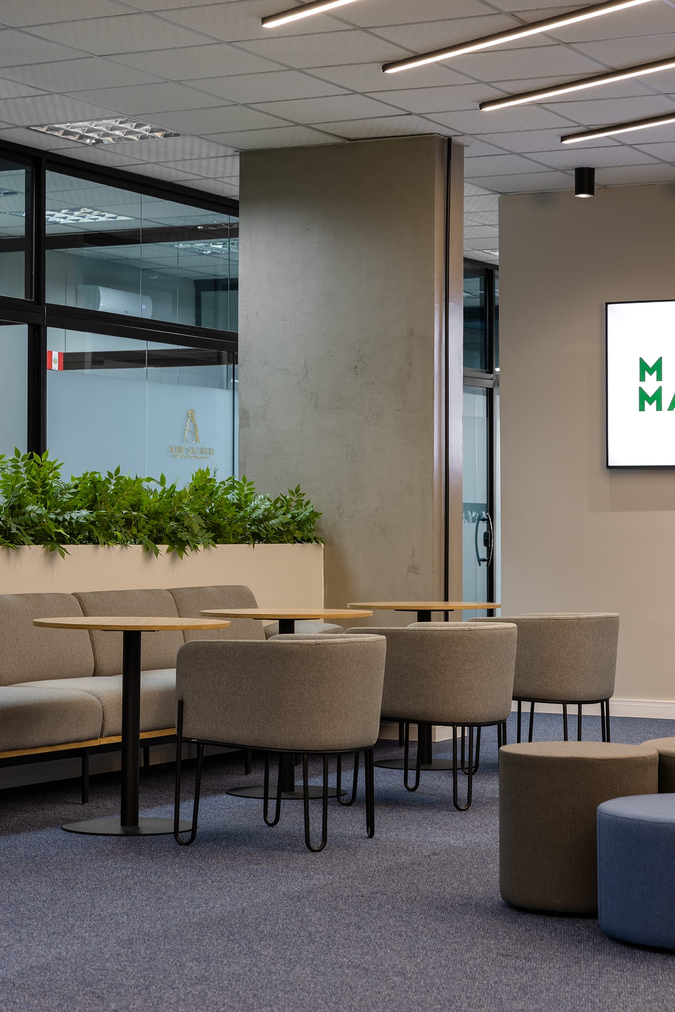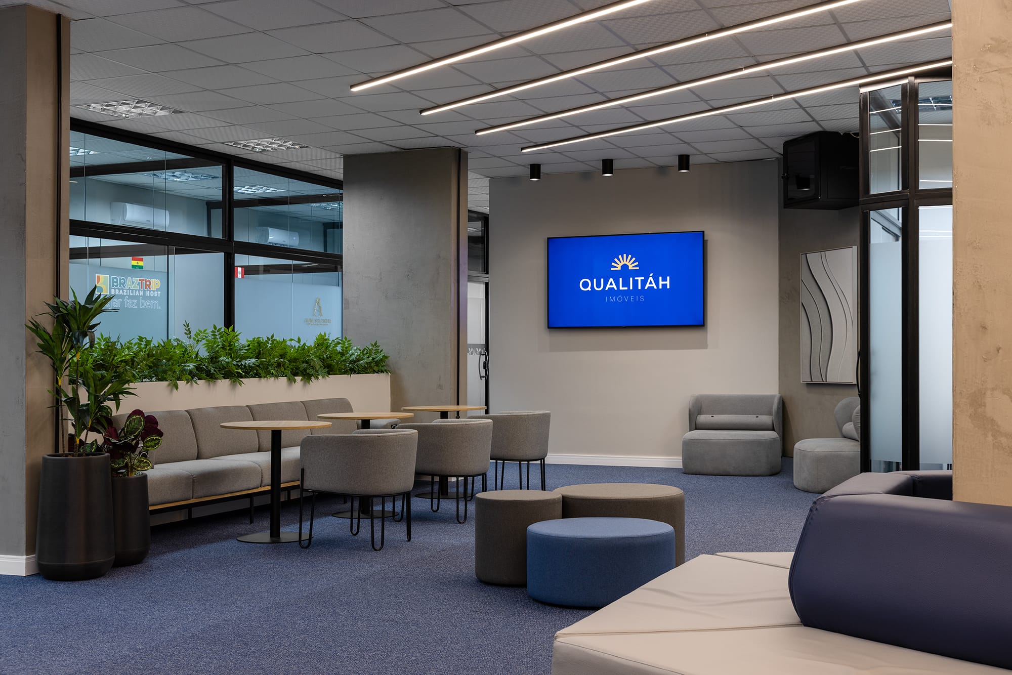 O design do espaço combina conforto, sofisticação e funcionalidade, transmitindo credibilidade e bem-estar. A estrutura conta ainda com cabines acústicas, café expresso, recepção acolhedora, mercadinho inteligente, massageador de pés e estacionamento incluso no plano.